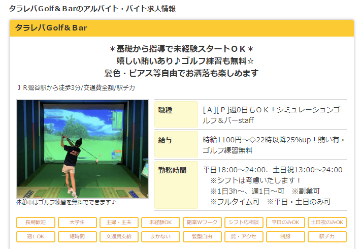 ☆シミュレーションゴルフBarでのホールスタッフのお仕事です